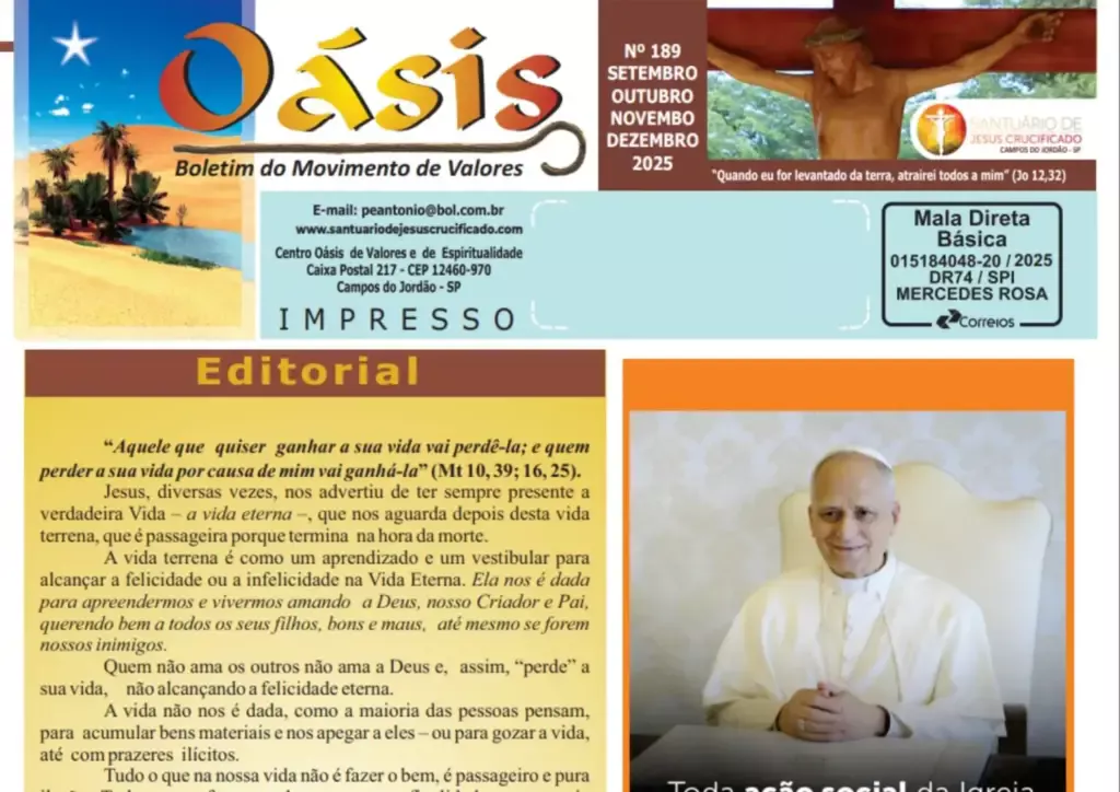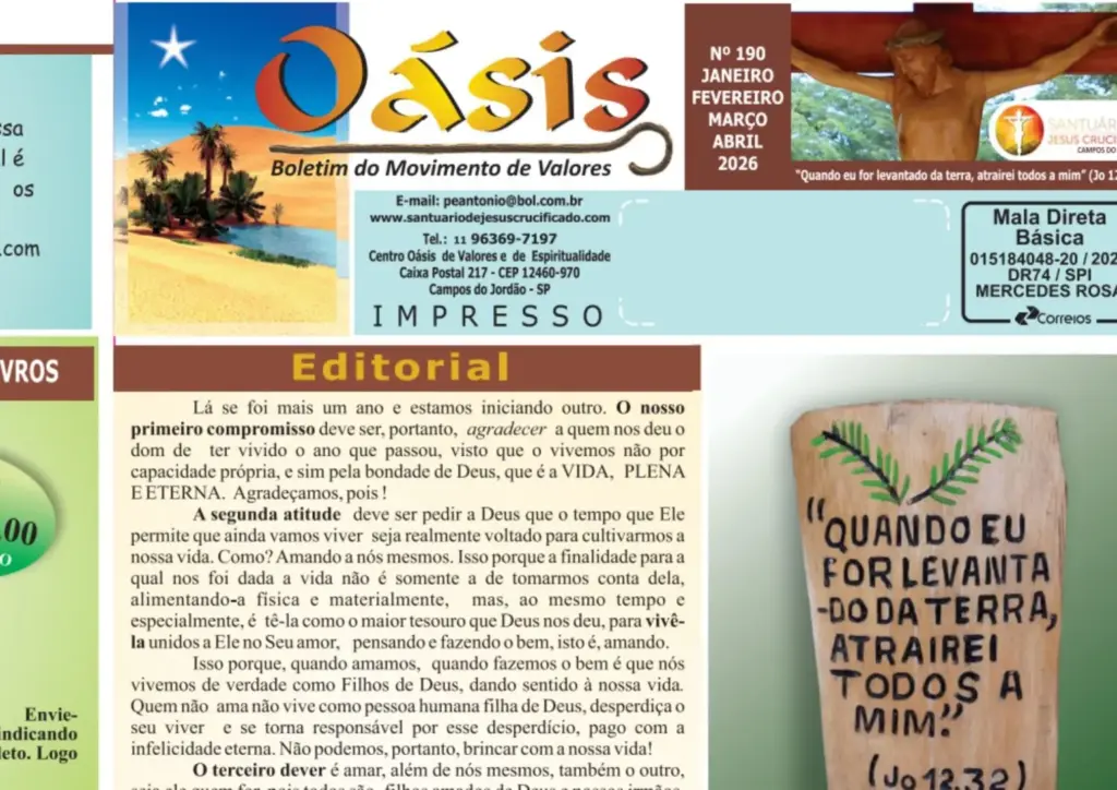 Aqui, você encontrará reflexões especiais, avisos importantes, nosso calendário de encontros e as novidades da família Oasiana. Que cada edição seja um sopro de renovação para sua caminhada!